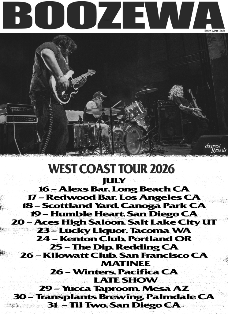 Known for their intense live performances, Boozewa has previously toured with The Obsessed, Suplecs, CKY, Amigo The Devil, and Coma Hole. This upcoming run marks a major milestone as they finally bring their sound to fans who have been asking for West Coast dates for years.