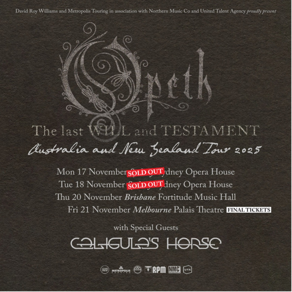 Next month, the band is supporting Prog Metal titans Opeth as special guest on their “The last Will and Testament” tour in Australia and New Zealand. The first two shows in the iconic Sydney Opera House are already sold out.