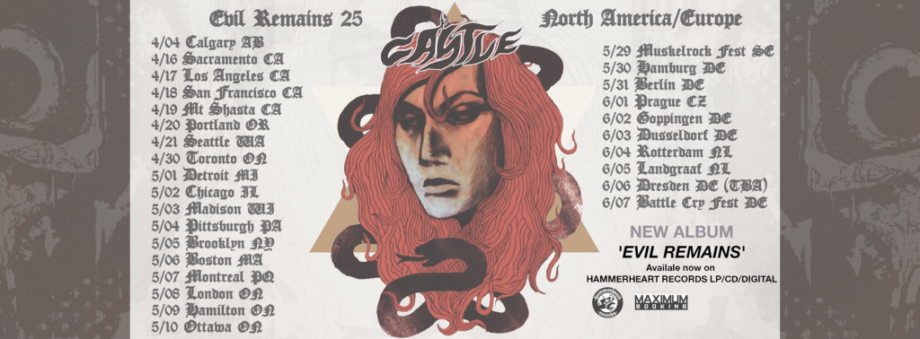 US/Canadian Heavy Doom outfit Castle have just announced new European tour dates in support of their recent album “Evil Remains“, which was released in September 2024 via Hammerheart Records. A full list of confirmed shows can be found below.