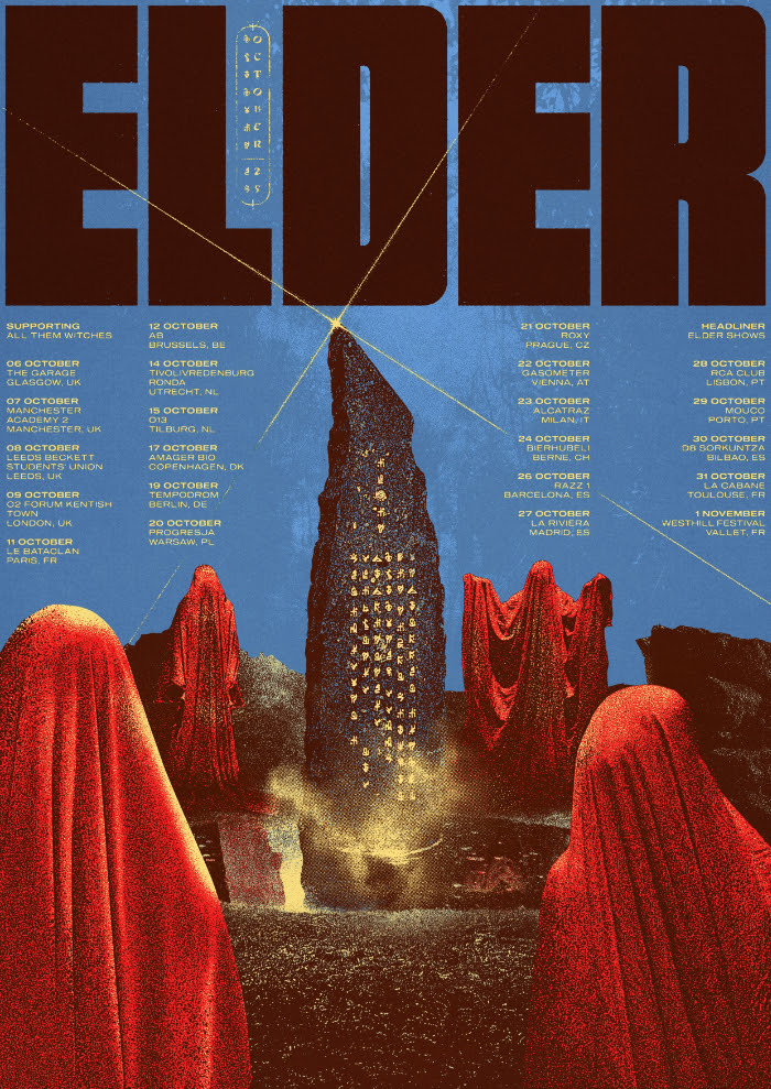 We are extremely stoked to support one of our favorite current bands, All Them Witches, on their upcoming “Hall Of Mirrors Tour” in Europe this October! On the back end of the tour we’ll be performing several headline shows as well.” – states Elder