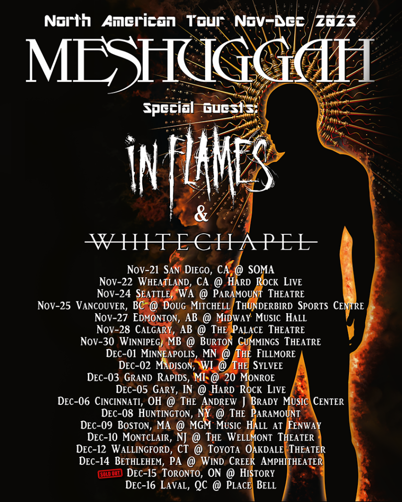 Meshuggah will return to US and Canadian stages for a nineteen-date tour this Fall with support provided by special guests In Flames and Whitechapel. Produced by Live Nation, the journey begins on November 21st in San Diego, California and runs through December 16th in Laval, Quebec. The tour marks the first time in five years Meshuggah has played on Canadian soil. The final show will also include the addition of Voivod. Tickets are on sale now HERE. See confirmed dates below.