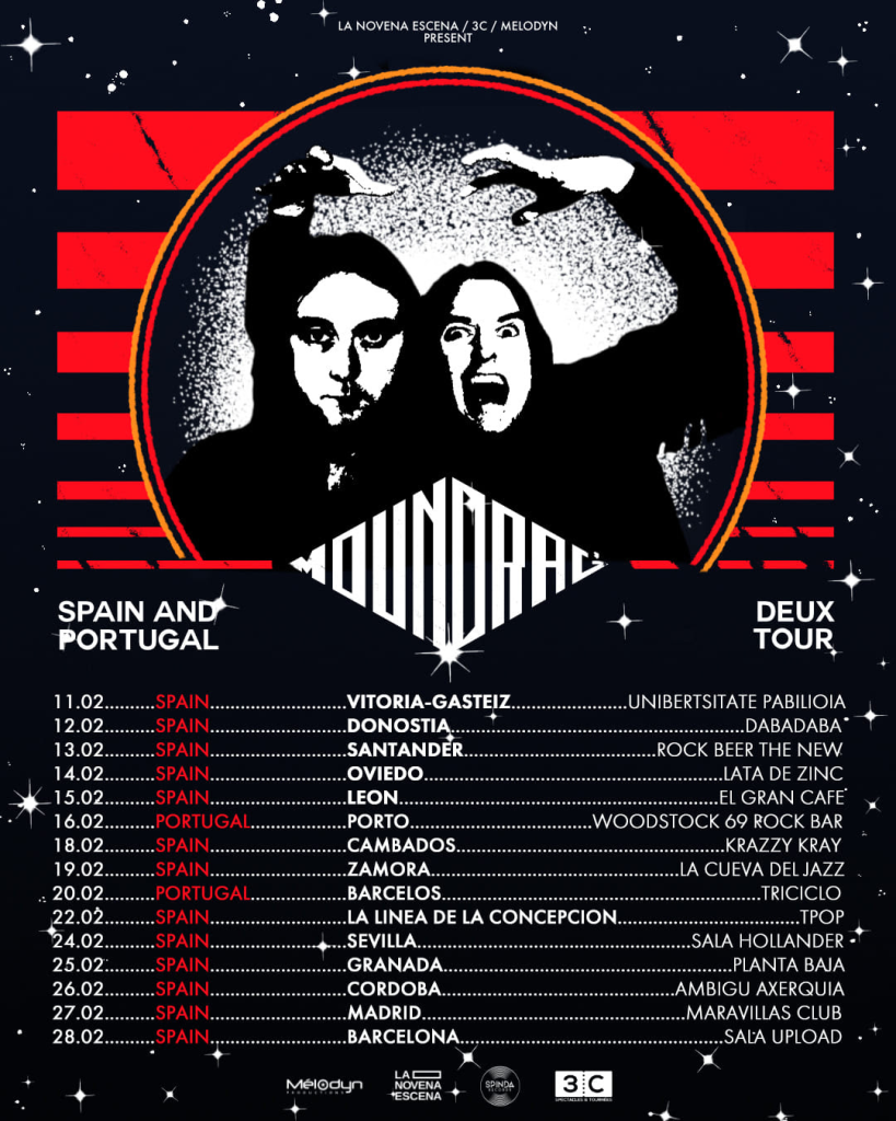 The French duo Moundrag announce their long-awaited return to the Iberian Peninsula with a 15-date tour across Spain and Portugal, during which they will present their second studio album, “DEUX” (2025, Spinda Records), promoted by La Novena Escena. This will be the band’s first Iberian tour since 2023, when they visited Spain to present their debut album “Hic Sunt Moundrages” (2023, Spinda Records).