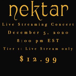 The tickets are available through the Nektar Official Website: https://nektarsmusic.com/product/1-ticket-for-the-nektar-holiday-spectacular-live-streaming-concert-dec-5-2020-800-pm-est-tier-1/