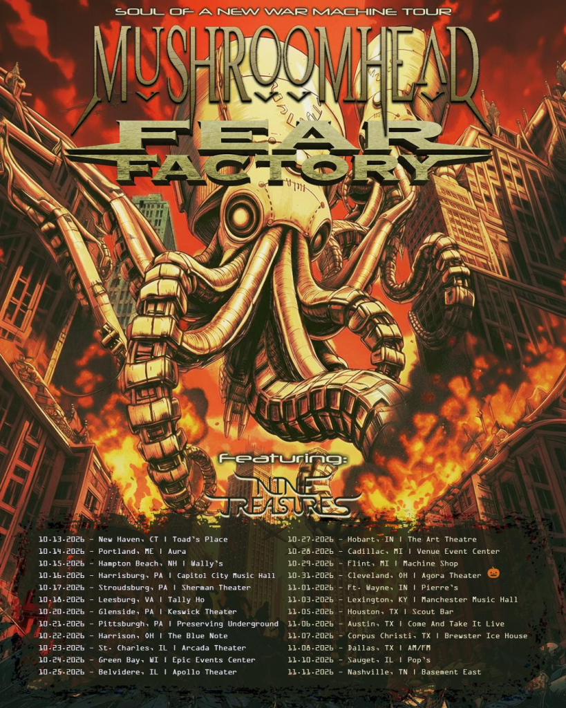 Chinese Mongolian Progressive Metal outfit Nine Treasures will join Mushroomhead and Fear Factory this Fall for a month-long US run of live dates. “The Soul Of A New War Machine Tour” begins October 13th in New Haven, Connecticut and runs through November 11th in Nashville, Tennessee. The journey marks Nine Treasures’ first ever US tour!