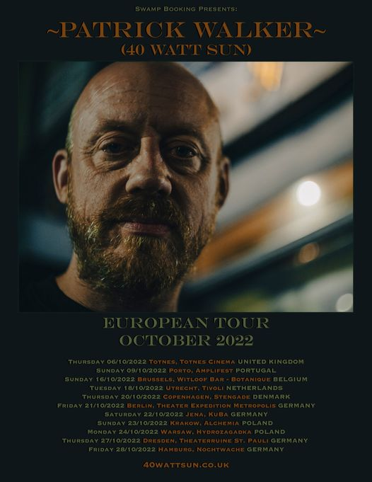 Patrick Walker (40 Watt Sun) European solo tour dates, October 2022.