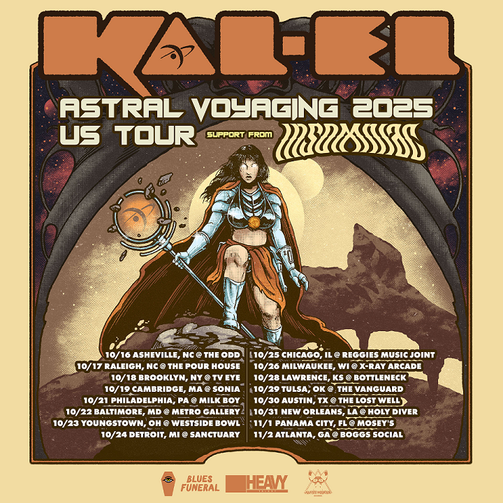 Norwegian stargazers Kal-El are set to embark on their first-ever US tour this fall, bringing the Heavy Cosmic Rock anthems of their new album “Astral Voyager Vol. 1” stateside. Joining them as support will be Atlanta Post-Doom unit Insomniac, promising night after night of Fuzz-laden riffs and interstellar grooves.