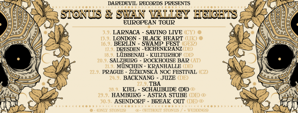 Stonus in collaboration with Daredevil Records and Fuzzorama Records’ Psychedelic Heavy Rockers Swan Valley Heights are proud to present the European co-headline Tour: Portals To the Sun