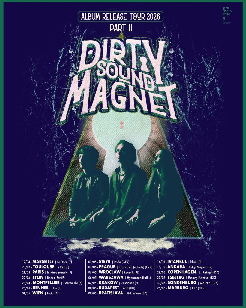 Fribourg, Switzerland based Progressive Psych Rock power trio Dirty Sound Magnet has announced the second leg of their European tour in support of their new album, “Me And My Shadow,” set to release this Friday, January 30, 2026.