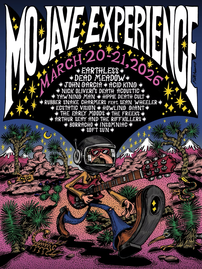The Mojave Experience festival announces the full lineup for the first annual event, which takes place from March 20th-21st, 2026 in Joshua Tree, California. The festival is the brainchild of organizer and High Desert native Patrick Brink, frontman of VOLUME and former lead singer of Desert Rock legends Fu Manchu. Tickets are on sale now for individual days.